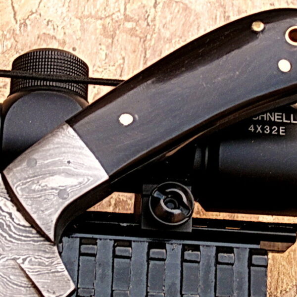 Crafty Orbit Brand Knife by York Vivant; Custom Handcrafted Damascus Steel Fixed Blade Hunting/Skinner/Camping Knife. Buffalo Horn Handle & Damascus Steel Guard.